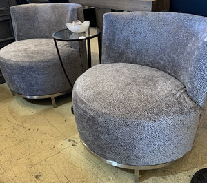 Gray Patterned Velvet Barrel Chair w/ Chrome Base
